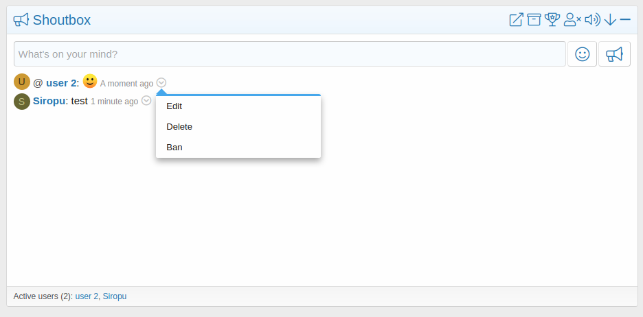 Il comprend une liste d'utilisateurs actifs, un archivage des shouts et l'option d'activation du mode « temps réel » pour de meilleures performances.