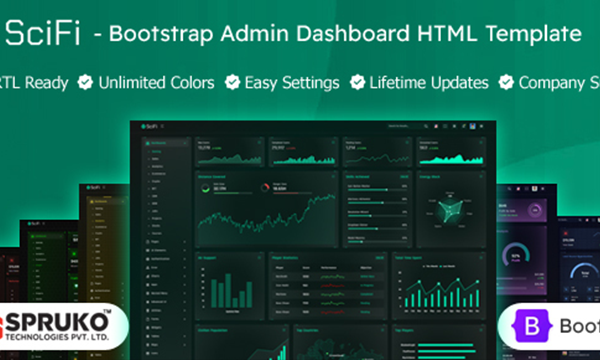Découvrez « SCIFI – Bootstrap Admin Dashboard Template », une administration futuriste inspiré de la science-fiction, développé sur le framework Bootstrap et bénéficiant de mises à jour GRATUITES à vie ! Doté d'une vaste gamme de fonctionnalités, ce modèle de science-fiction vous offre une gestion de tableau de bord fluide.