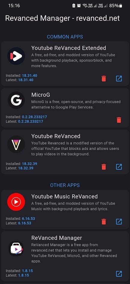 Posté(e) le 17 octobre 2025le 17 oct. ReVanced Manager 3.0.16Fonctionnalités de ReVanced ManagerTéléchargement, installation et gestion faciles des applications ReVanced et des APK modifiésMises à jour automatiques pour les dernières fonctionnalités et corrections de bugsInterface conviviale avec un design intuitifExpérience légère et sans publicitéApplication automatique du correctif sans attenteGestion sûre et fiable des applications modifiéesPlateforme centralisée pour tous les besoins APK ReVanced et moddésParamètres personnalisables pour une expérience utilisateur personnaliséeMises à jour et améliorations régulières de l'équipe de développementComment télécharger et installer ReVanced ManagerPour Android :Supprimer toutes les installations précédentes de Manager ReVancedTéléchargez et installez la dernière version de Manager ReVanced ici .Profitez d'une visualisation Manager sans publicité.
